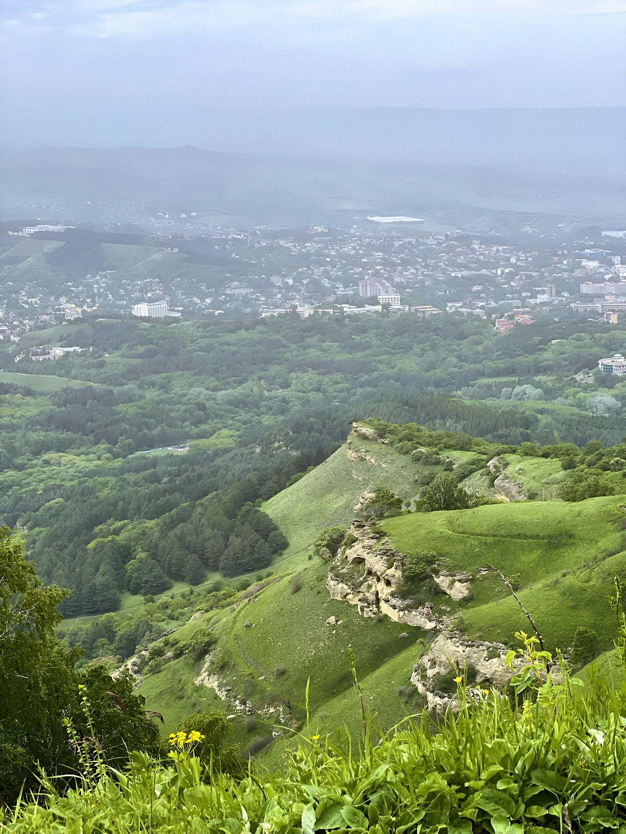 В последний день поездки я поднялась по туристической тропе на Малое Седло, вторую по высоте точку города. В хорошую погоду с нее можно даже увидеть Эльбрус. Полтора часа пыхтела в гору, под конец чертыхалась, но виды в конце маршрута стоили того. И с каким же удовольствием я устроила привал на вершине и там съела конвертик с курицей, сыром и томатами из «ВкусВилла».