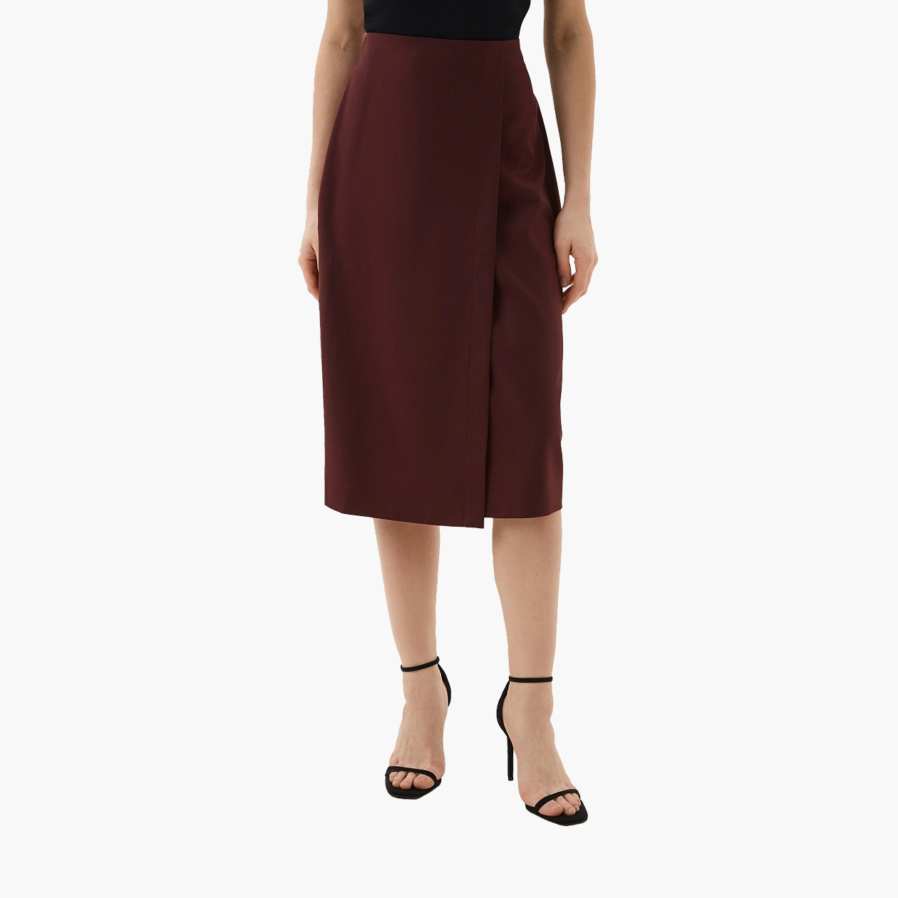 Стилизовать юбку на запахе несложно, можно оттолкнуться от ее материала. Например, строгие модели из костюмной ткани и экокожи можно уравновесить свитерами и лаконичными сапогами, а к расслабленным вариантам из денима и шерсти подойдут рубашки и слингбэки.