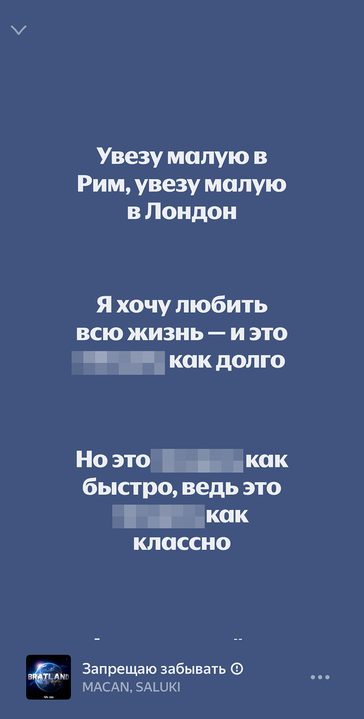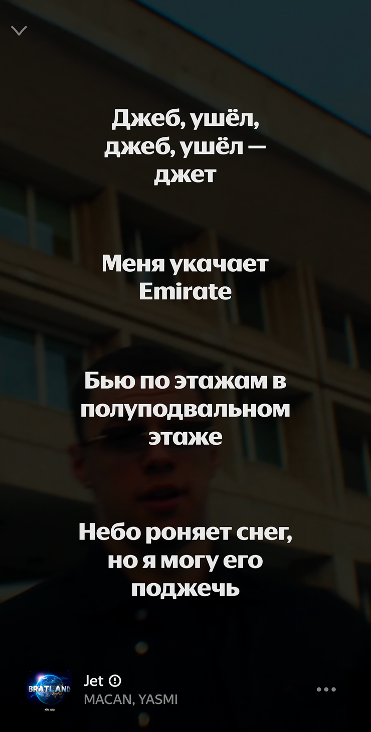 Я уже несколько дней как закончил эксперимент и все равно периодически хожу, причитая что-то про «М5 асфальт 8». К слову, моим друзьям пришлось объяснять мне половину слов из припева. Я не знал, что такое «„Биркин“ цвета осень», а строчка «Ice занижает градус Roxie» звучала как что-то на шумерском. Причем тут мобильная игра Asphalt 8, не понимаю до сих пор.