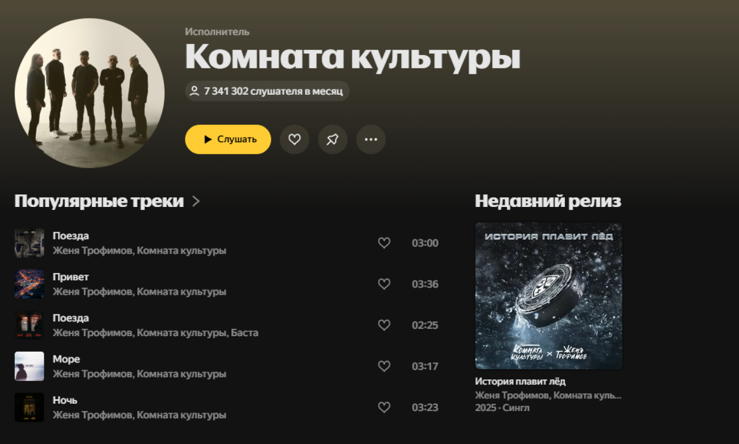 Есть в топе и совсем старожилы — группа «Король и Шут» аж с двумя песнями, «Лесник» и «Кукла колдуна». Меня в жизни окружают фанаты «КиШ», но я сам никогда группу особенно не любил. Ровно до того момента, пока не послушал их в чарте «Яндекс Музыки». Никогда я так не был рад музыке Горшка и компании, как в эти счастливые пару минут между треками Mona и Вани Дмитриенко.