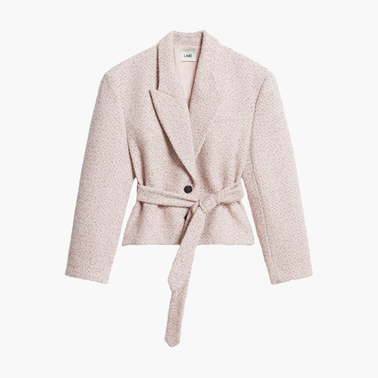 Если у самого простого по силуэту жакета есть необычная фактура (интересно на ощупь) или текстура (интересно на вид), значит, у вас есть все для интеллигентно-нарядного образа. Самые торжественные варианты — жаккард и атлас, более повседневные — кожа, замша и твид. От сложного оттенка мы бы и тут не отказались: например, как у жакетов ниже — увядающий розовый и жвачечно-ментоловый.