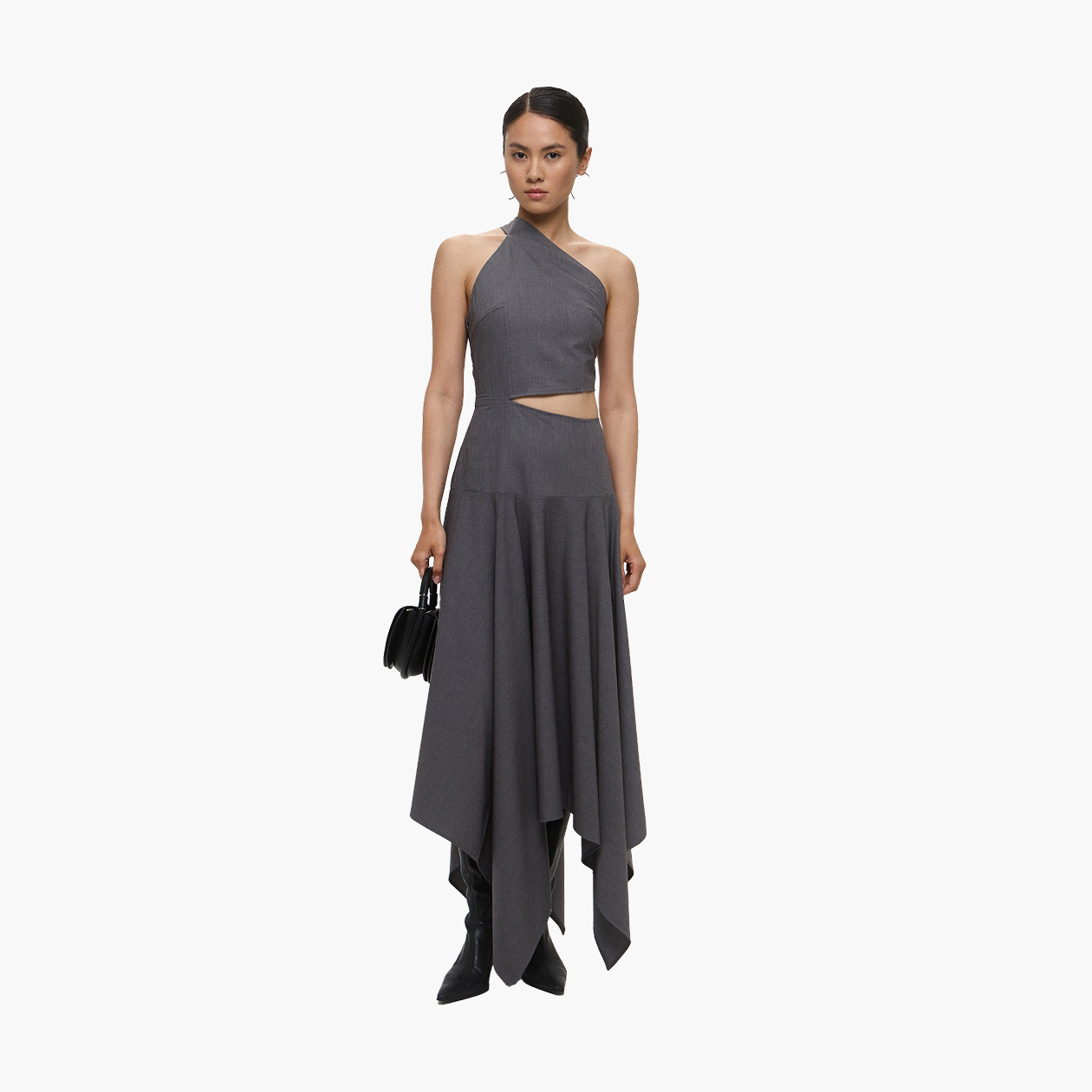 У нас не получилось обойти вниманием платья — все-таки это популярнейший способ одеться интересно и без усилий. Чтобы не предлагать вам банальные комбинации или платья-футляры, мы нашли два наглядных примера: оба из костюмной ткани, но у серого платья необычная конструкция действительно бросается в глаза, а у второго — очаровывает сдержанностью.