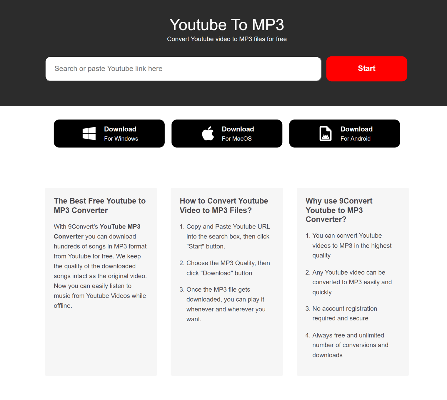 9Convert предлагает скачать музыку только в формате MP3, сохранив качество оригинала. Сервис доступен по ссылке.