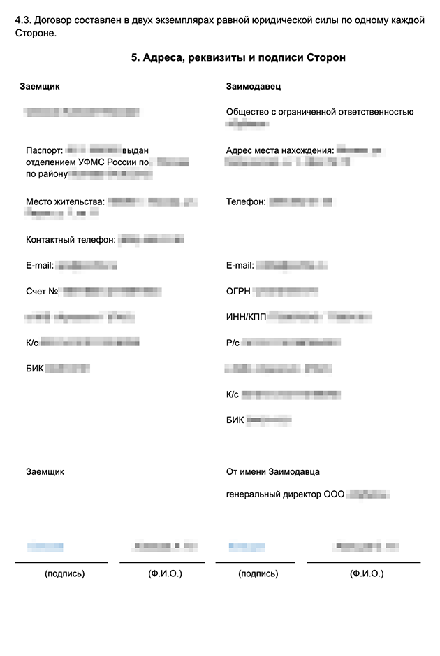- Реквизиты сторон. И работник, и работодатель — ИП или гендиректор компании — должны подписать договор собственноручно.