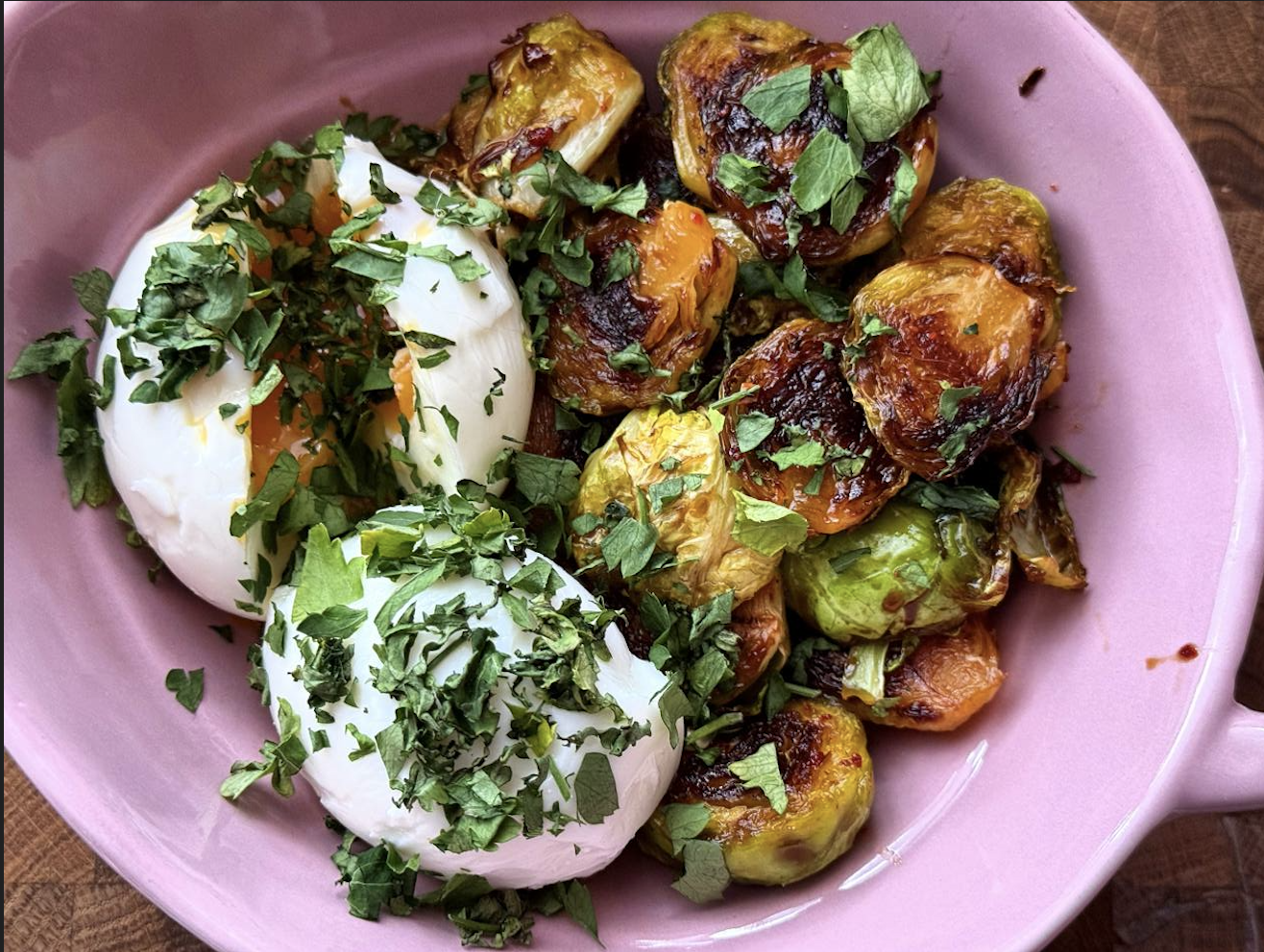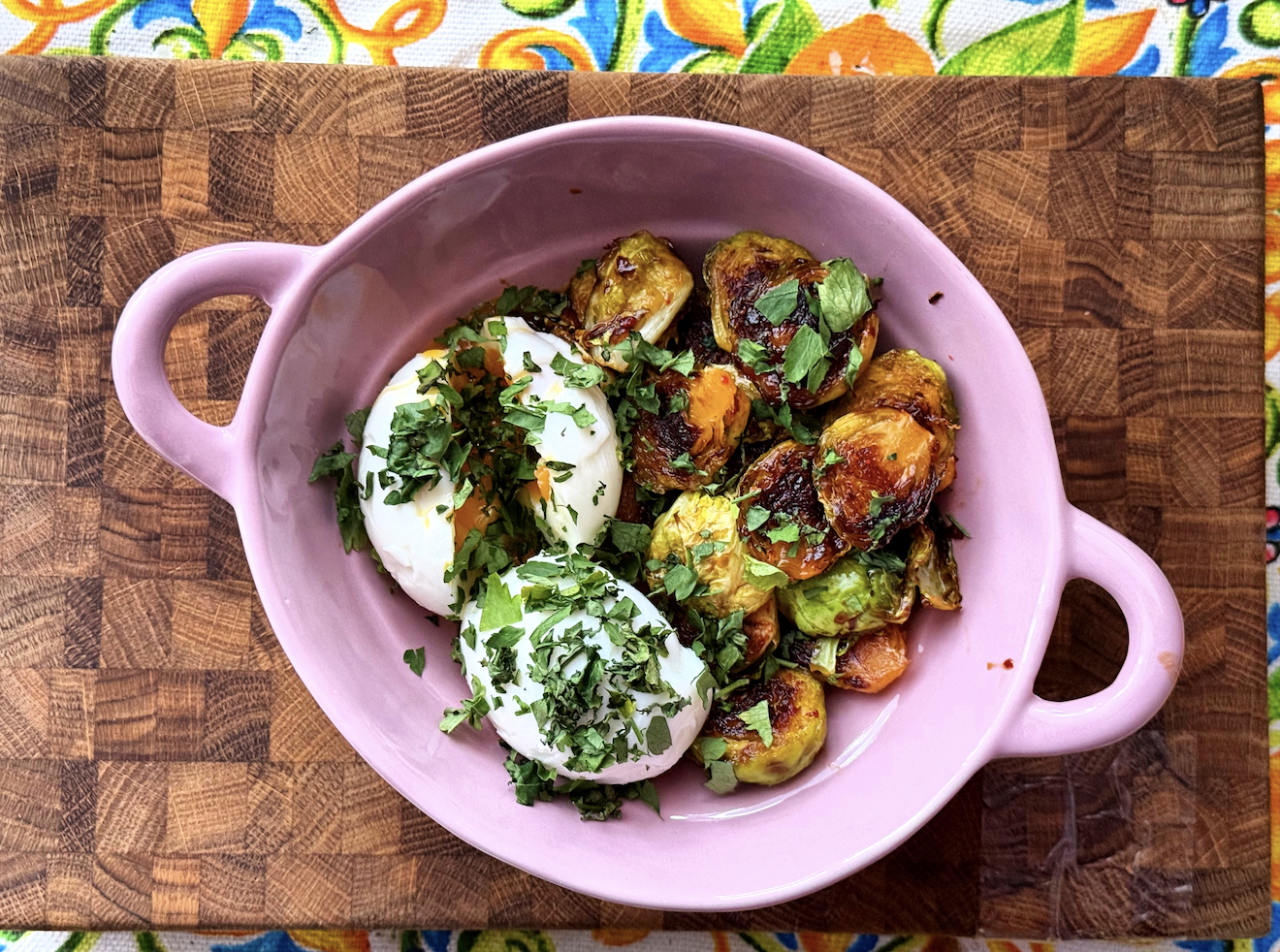 Мой завтрак: брюссельская капуста в соево-медовом соусе с яйцами