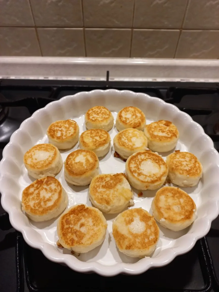 Тесто не плывёт, не липнет к рукам. Я налепила 15 мини-шайб размером с крышечку от йогурта. Жарить — одно удовольствие: переворачиваются чётко, не разваливаются. Вкус нежнее, чем на пшеничной муке. И нет чувства, что ты съел кирпич.